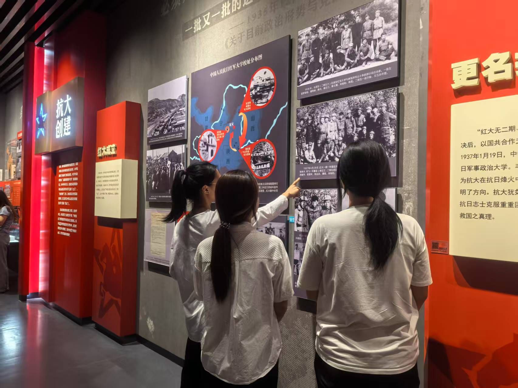 在纪念馆内,一张张图片、一件件展品,无不诉说着抗大故事,同学们深切感受着在民族危存亡的危急时刻,一批批抗大人勇当先锋,奔赴各条战线,为了战争胜利抛头颅洒热血的伟大精神。