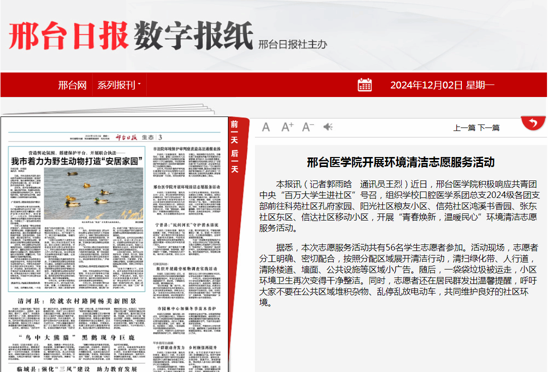据悉,本次志愿服务活动共有56名学生志愿者参加。活动现场,志愿者分工明确、密切配合,按照分配区域展开清洁行动,清扫绿化带、人行道,清除楼道、墙面、公共设施等区域小广告。随后,一袋袋垃圾被运走,小区环境卫生再次变得干净整洁。同时,志愿者还在居民群发出温馨提醒,呼吁大家不要在公共区域堆积杂物、乱停乱放电动车,共同维护良好的社区环境。