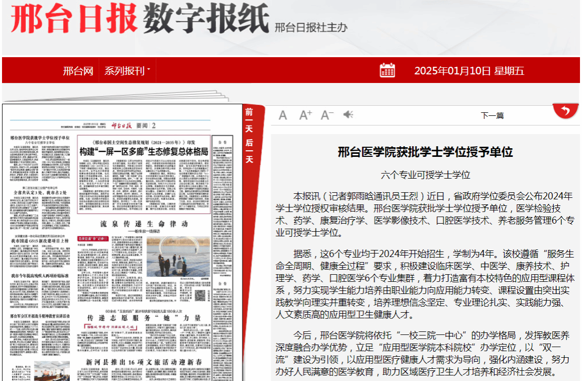 今后,188bet官网入口将依托“一校三院一中心”的办学格局,发挥教医养深度融合办学优势,立足“应用型医学院本科院校”办学定位,以“双一流”建设为引领,以应用型医疗健康人才需求为导向,强化内涵建设,努力办好人民满意的医学教育,助力区域医疗卫生人才培养和经济社会发展。